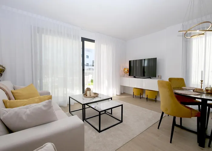 Estepona West Luxury Apartment Leona, di 130 m², si trova a una distanza di 4 km dalla Chiesa di Nuestra Señora de Los Remedios. Dotato di una piscina all'aperto con una recinzione per piscina, quest'appartamento offre anche una terrazza.